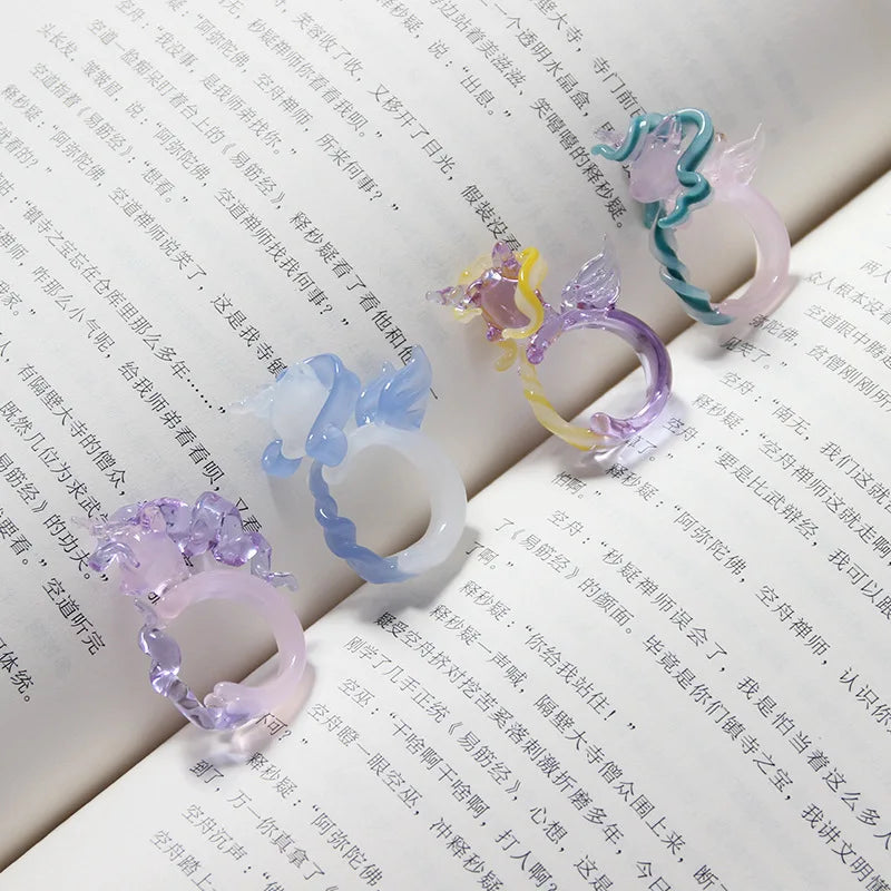 Du liebst es, wenn deine Accessoires Geschichten erzählen? Dann ist dieser mehrfarbige Einhorn Ring aus Harz genau das Richtige für dich! Stell dir vor, wie dieses kleine Kunstwerk an deinem Finger glänzt und alle Blicke auf sich zieht. Es ist kein gewöhnlicher Ring, sondern ein echtes Statement-Piece, das deine spielerische Seite unterstreicht. Das Harzmaterial macht ihn super leicht und angenehm zu tragen, sodass du ihn den ganzen Tag nicht mehr ablegen möchtest.